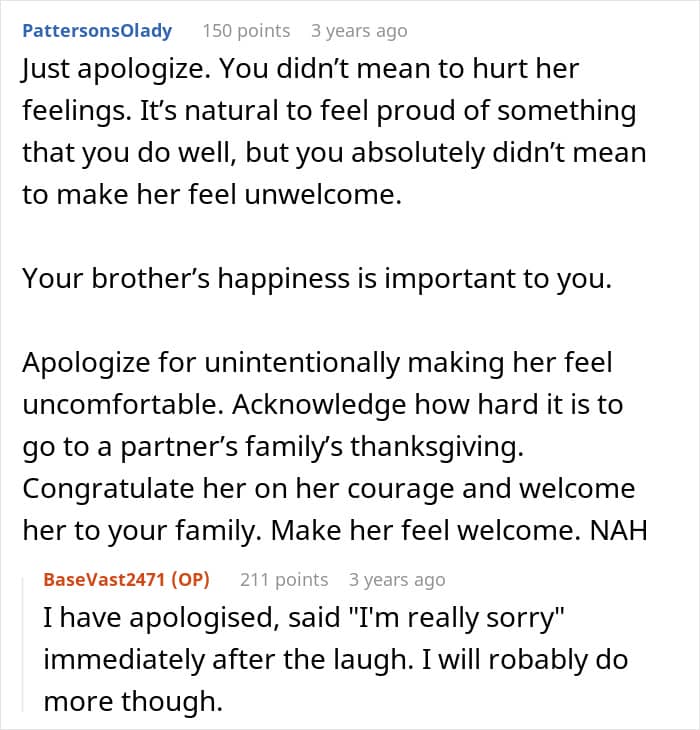 Well, Chelsea was so hurt that she teared up, and the rest of the night was completely awkward for everyone. Although OP and her sister apologized to her, John called them jerks. In fact, he stayed mad at the poster for quite some time, so she vented online, seeking advice. This sparked a massive debate, as some sided with her, while few found it very rude.