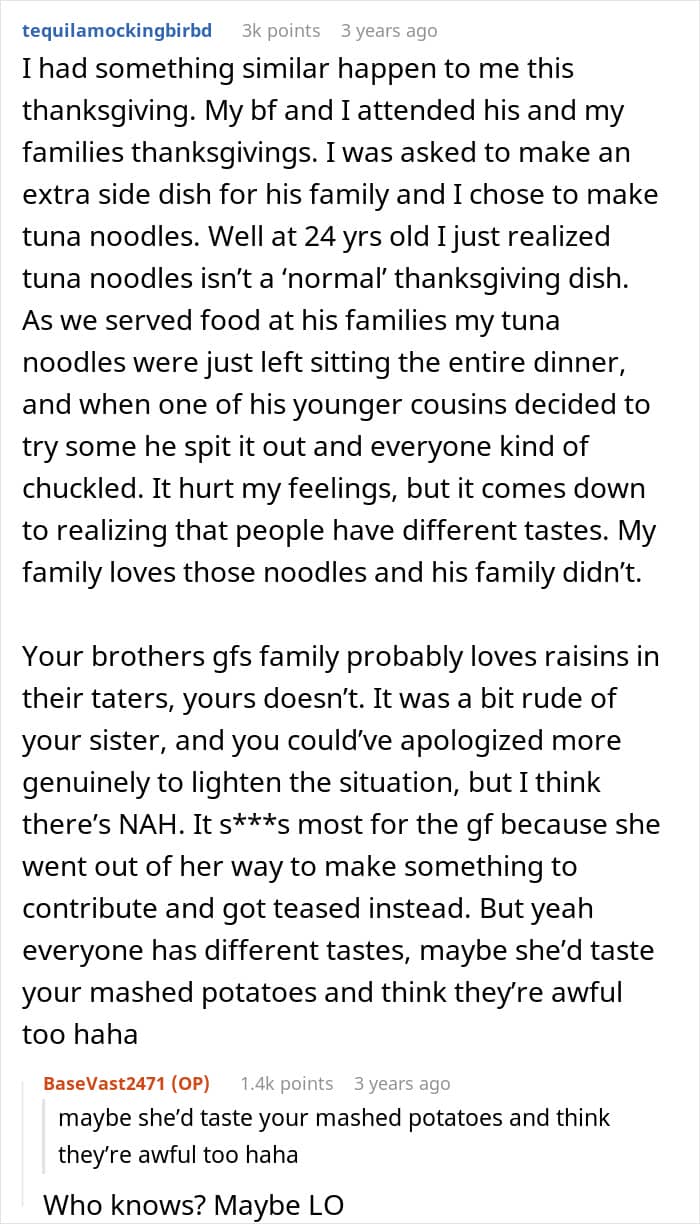 Considering that it was her first time meeting his family, she might be nervous, so I agree that it’s sad she ended up in tears. Meanwhile, just like the poster, many people were quite taken aback by the “mashed potatoes with raisins” recipe. Well, who better to comment on this than a food expert?