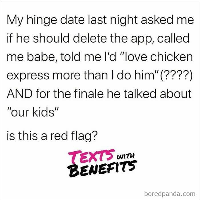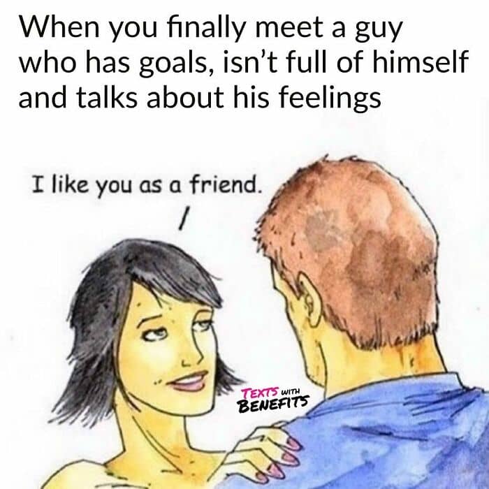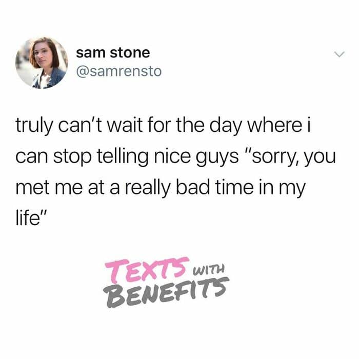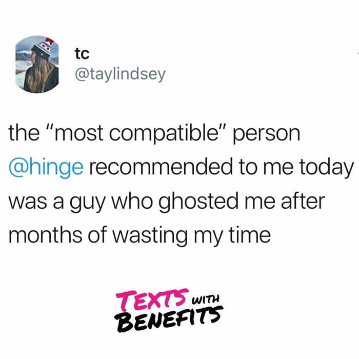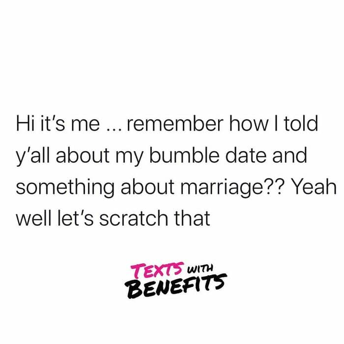 Still, if there’s one upside to modern dating chaos, it’s the comedy gold it produces. The Instagram account Texts With Benefits captures it all, sharing some of the funniest and most painfully relatable posts about love, dating, and everything in between.