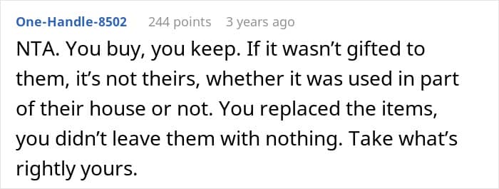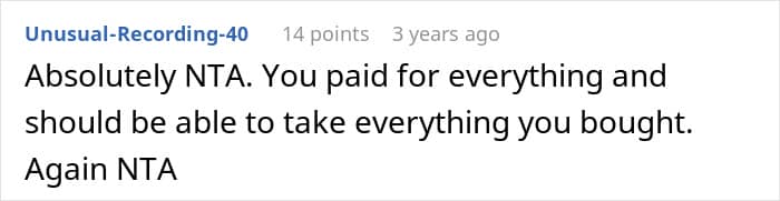Most commenters agree there’s nothing wrong with taking things that she paid for