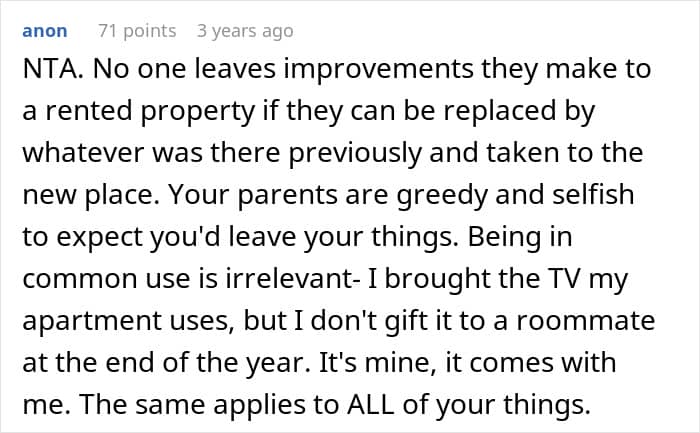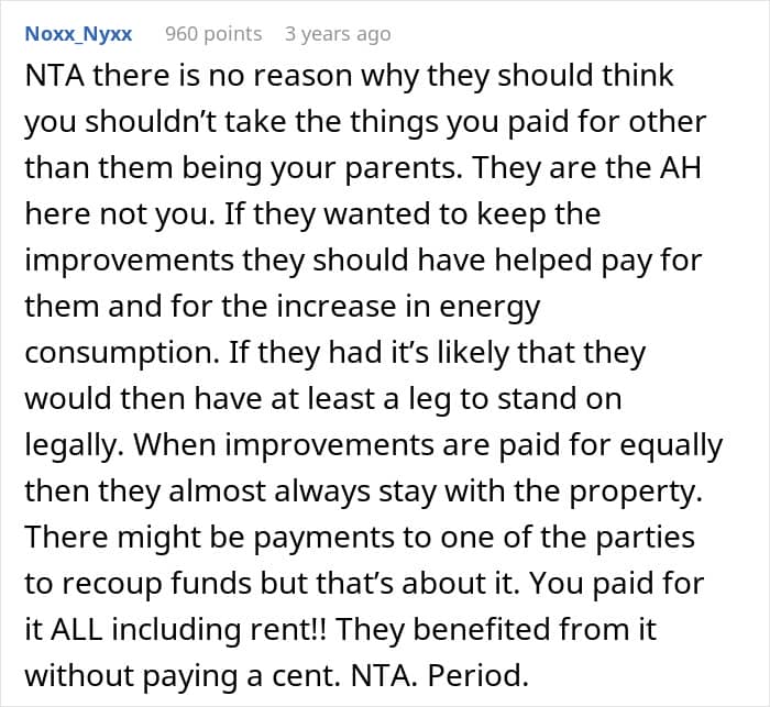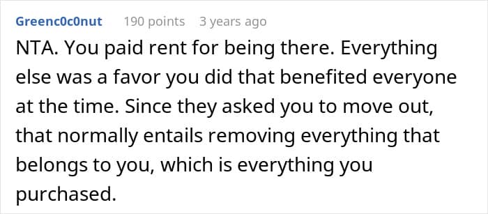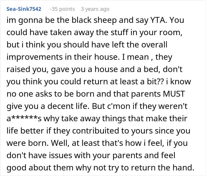 That said, this woman seemed not to mind living with her parents for longer. During it, she was able to work, save money, and even update the house a bit. But the moment she turned 25, her parents demanded that she move out, hoping she would leave the items she had upgraded behind. Unfortunately, this didn’t happen, which left them furious.