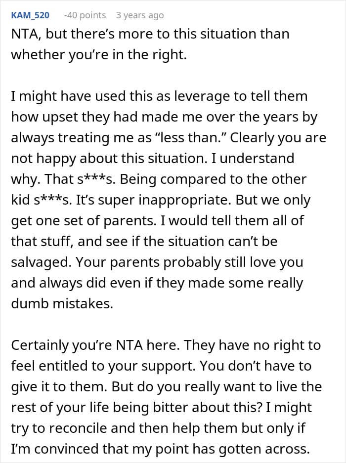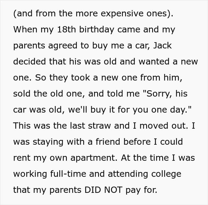 RELATED:These parents lost financial help from their son after treating him poorly in favor of the golden child