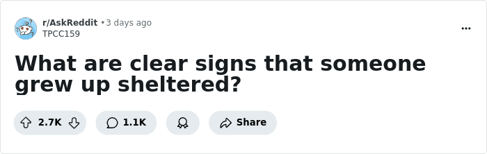 Granted, these aren’t official criteria made by psychologists or other specialists, only the things netizens who answered the question on Reddit “What are clear signs that someone grew up sheltered?” have noticed throughout their lives, so take it with a grain of salt.