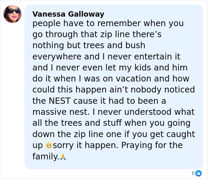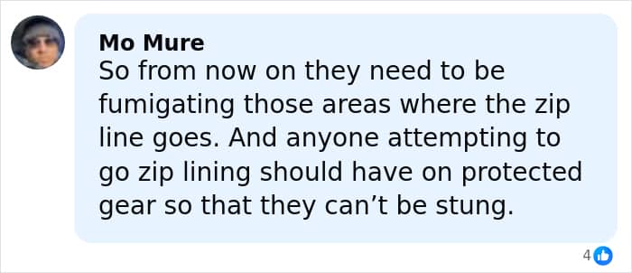 At some point while zip-lining, the tourists and their guide struggled to descend from a tree and were attacked by a swarm of Asian giant hornets, which are the largest species of hornet in the world.