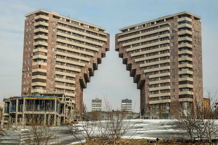 In 1954, a thin wedge-shaped building was erected by architects Salah and Fawzi Itani on a 120 sq m plot in Beirut, Lebanon at the request of a man wanting to spoil the sea view of his brother after they failed to agree to jointly develop their neighboring plots. The street facade appears to be an ordinary apartment building, but is 60 cm at the narrowest and four meters at the widest. It is known as Al Ba’sa (The Middle Finger) and formerly as The Queen Mary due to its resemblance to the cruise ship.