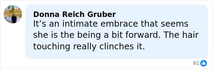 “In the hug, also, they’re pressed up against each other, he is smiling, and the little crème de la crème on the s**ual aspect of that interaction, besides the pelvis placement, is she’s running her hands through his hair,” said Patti Wood, an expert in nonverbal communication.