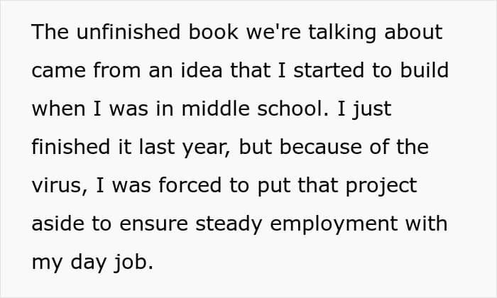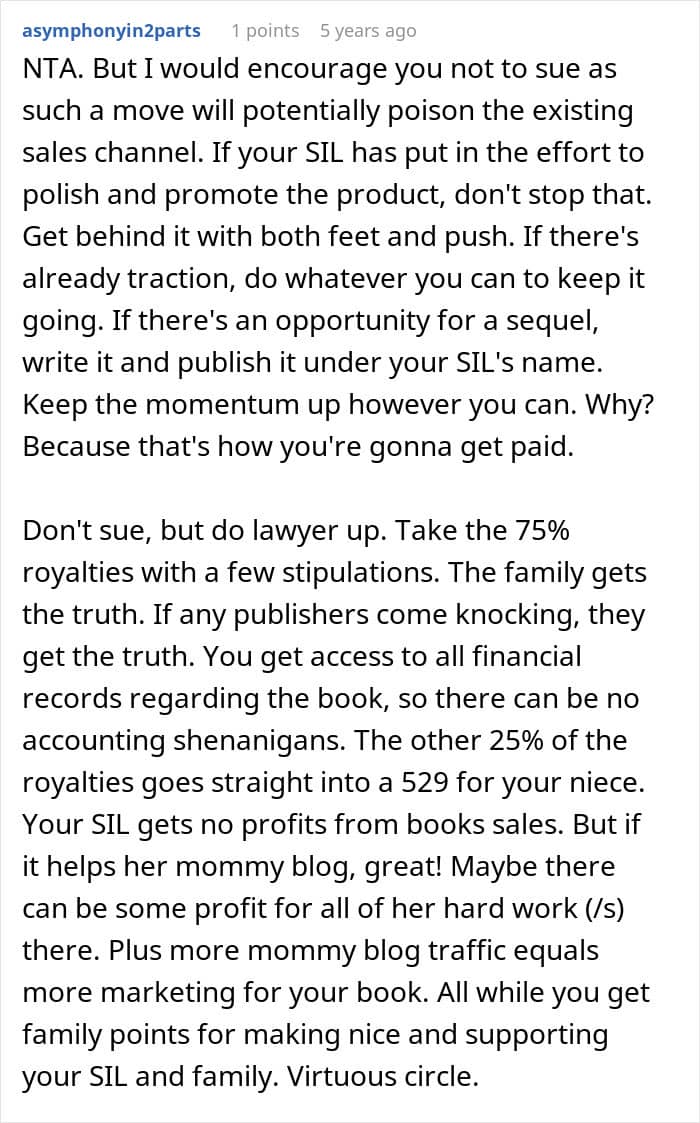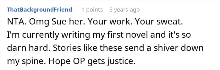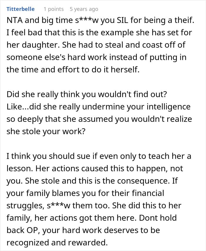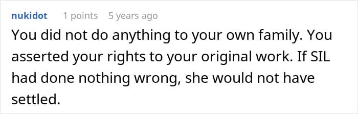So you can imagine the heartbreak of this Redditor, who decided to support her sister-in-law by buying her new book, only to realize it was a copy of her own story, one she’d been working on since childhood. Feeling shocked and betrayed, she decided to take legal action. But when her family found out, they didn’t take her side.
