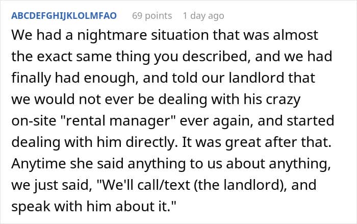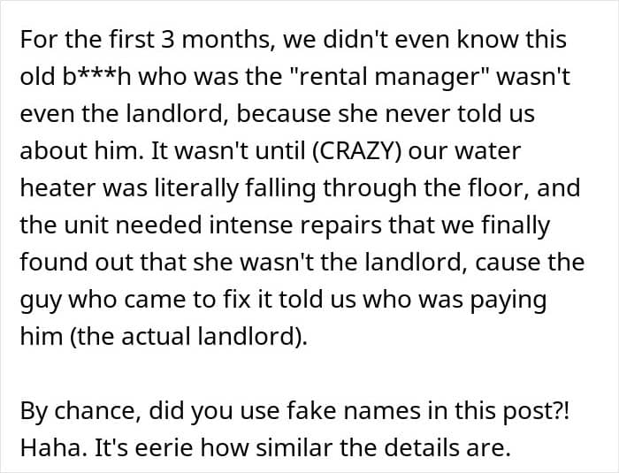 RELATED:A renter found a creative way to get back at their Karen on-site landlord