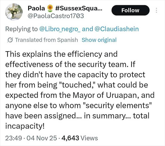 Claudia’s interaction with the public on Tuesday came as the country is still reeling from the weekend assassination of Carlos Manzo, the mayor of Uruapan.