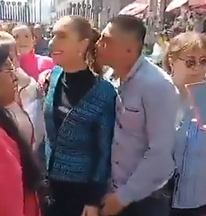 Videos show the seemingly inebriated man attempting to kiss the political leader