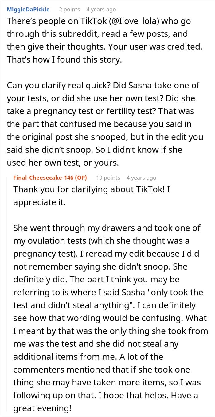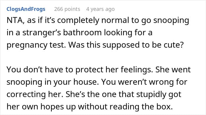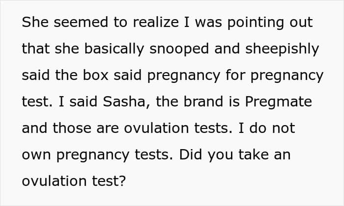 Setting aside the awkward fact that she snooped through someone else’s things, the bigger issue was that the test wasn’t even for pregnancy—it was something entirely different.