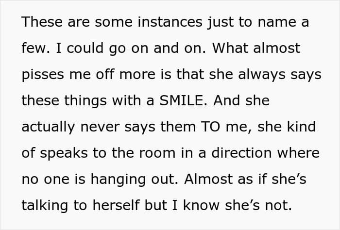 Another one of her issues is her MIL’s passive-aggressive behavior