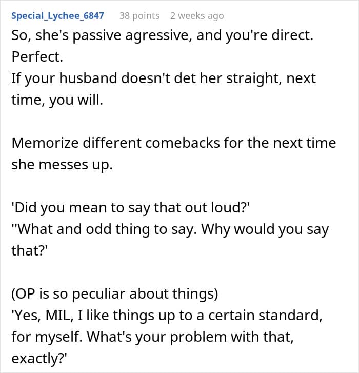 A woman knows this feeling all too well after her recent dealings with her mother-in-law. She had initially put up with passive-aggressive comments, including matters that were highly sensitive to her.