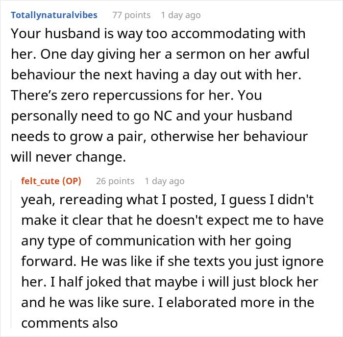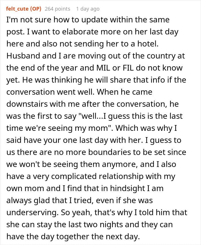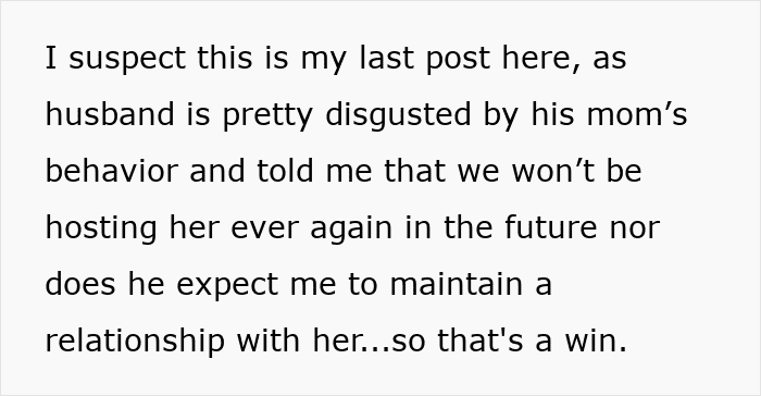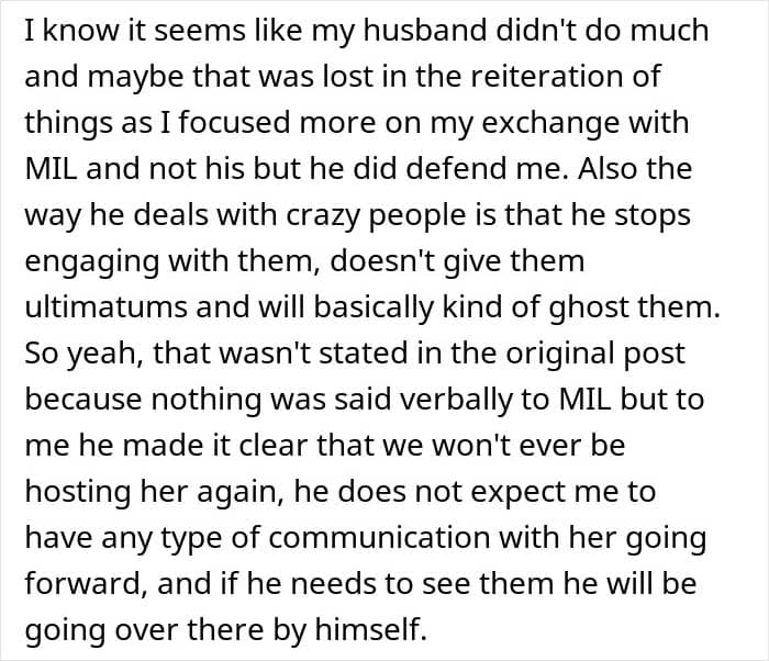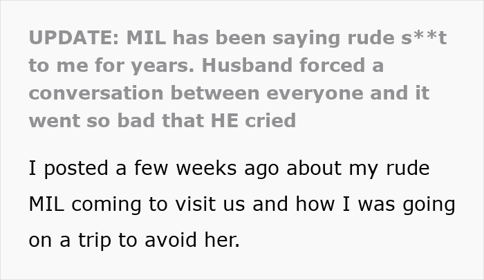 The woman shared an update, stating that her MIL’s behavior drove her husband to tears