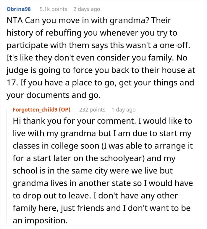 She told us she spends most of her time alone in her room. “I feel at times numb and dejected, just to be inundated the next minute with feelings of guilt and panic… It’s gotten better since I posted on reddit and I’ve started to actively look up for things to do regarding the upcoming school-year and moving out. Having a place to vent and getting advice and affirmation has also been a godsend.”