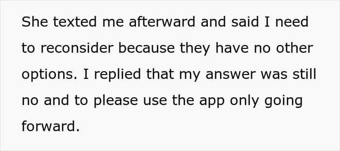 Despite him refusing, she asked again and again. Her current husband has cancer and she firmly believes her ex should step in to babysit in the event of an emergency.