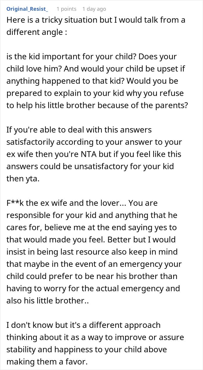Many agreed that the ex-wife’s child is not the man’s responsibility