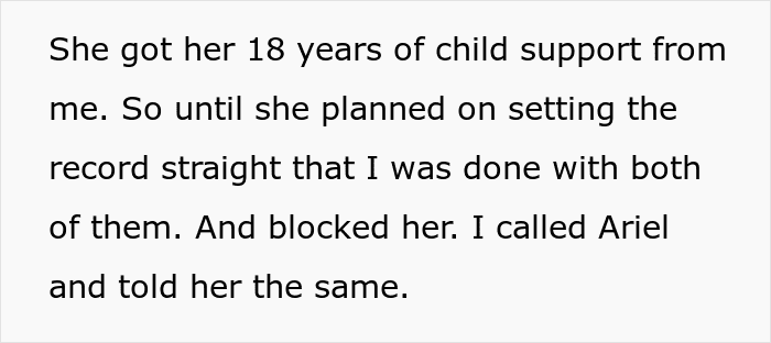 As the man himself admitted, he does not want to take money out of his household if his daughter has been ignoring two thirds of his family for many years. Lauren called the OP a jerk on the phone, and then Ariel called him the same. The father said that he had paid child support for many years, and that the daughter should consider a student loan if she won’t make an attempt to reconcile with his family.