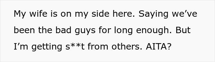 According to the OP, his wife supported him, although all the other relatives refused to, and some even criticized him heavily. So the man just decided to take it online to find out what netizens think about this situation.