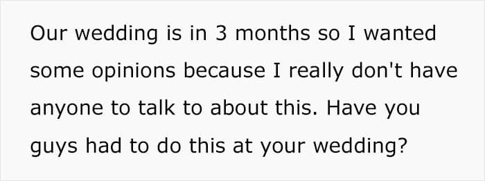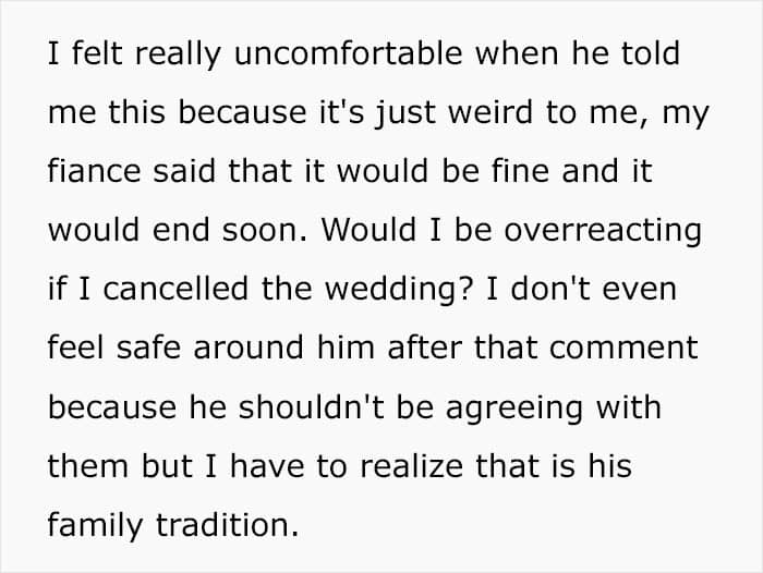 Needless to say, it didn’t take long for the author of the post’s wedding to be called off because of traditions like that
