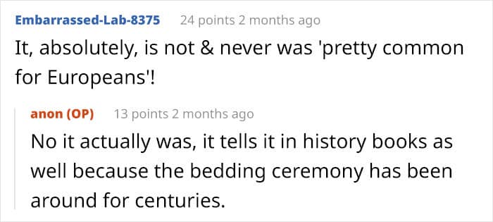 For context, yes, bedding is definitely a legit custom, in the sense that it exists. However, ew. Also, it goes against how it doesn’t really create togetherness if it’s forced.