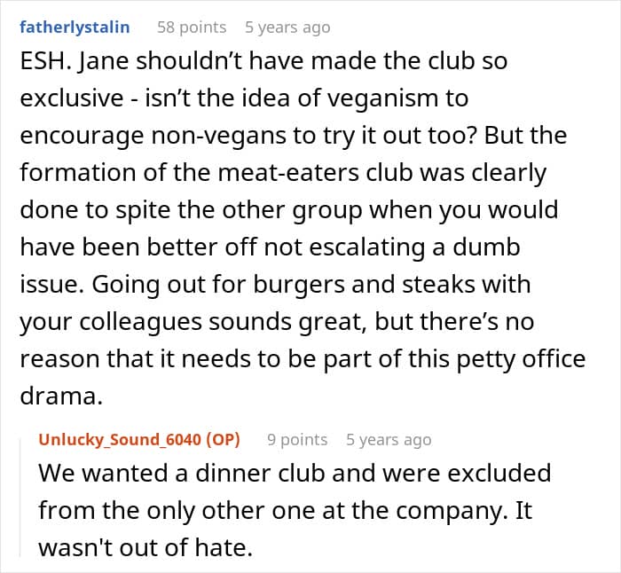 One worker asked the AITA community to weigh in and decide if they were a jerk for starting a company ‘lifestyle’ club just for meat-eaters. This was their answer to an incredibly exclusionary and divisive club that their vegan colleagues had formed earlier. Scroll down for the full story and to see what the internet had to say about all the drama.