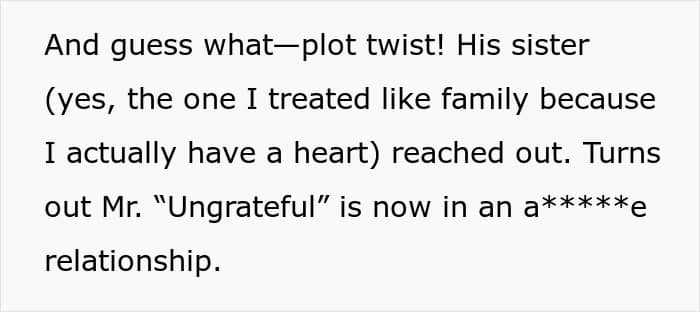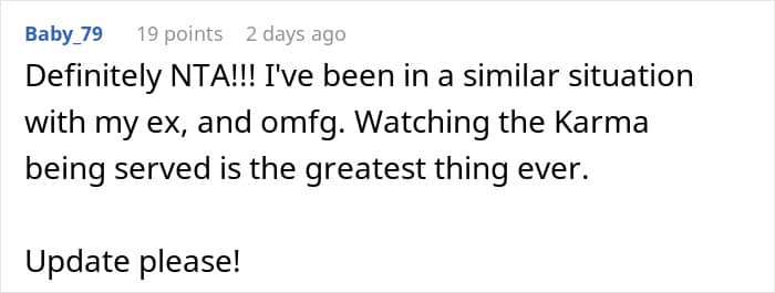 However, she gave us an update that she has already filed the case and is waiting for a court date. Meanwhile, the cherry on top is that her ex’s sister contacted her and spilled the tea that the guy is in a violent relationship. Apparently, he fought with his girlfriend because of OP and she got handsy with him, so his whole family hates her, while the poster is just enjoying destroying his life!