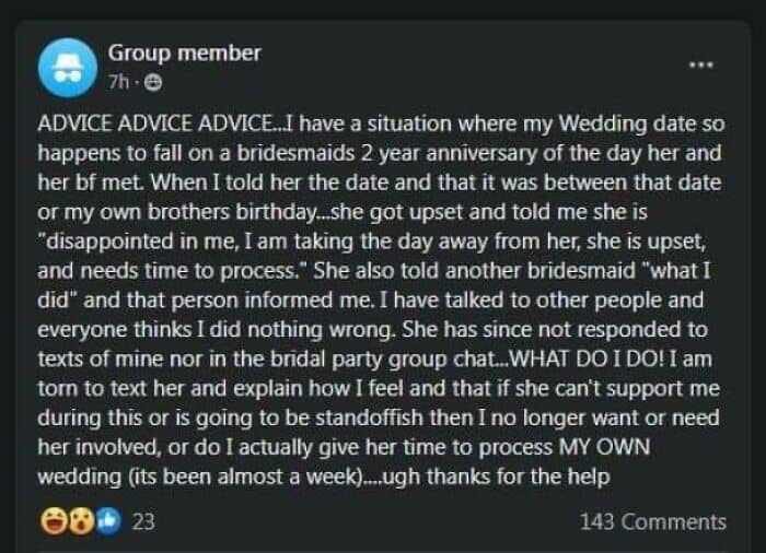 The stories below make you wonder how important it is to choose your close friends and family members so you don’t end up with a stolen spotlight and a bad memory.