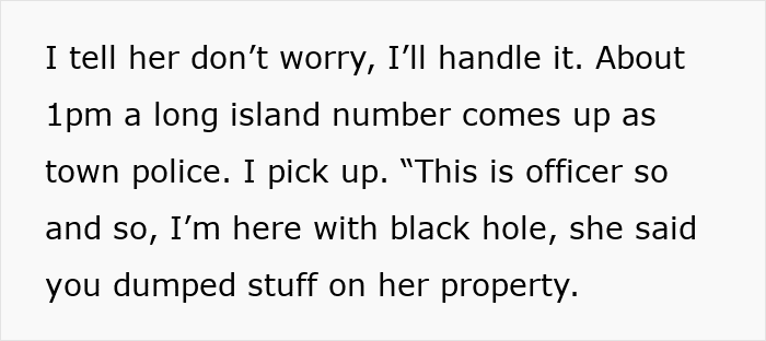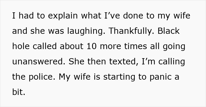 The next morning, the mother-in-law called, furious, saying she’d called the cops, but the guy just told her she got what she asked for and hung up