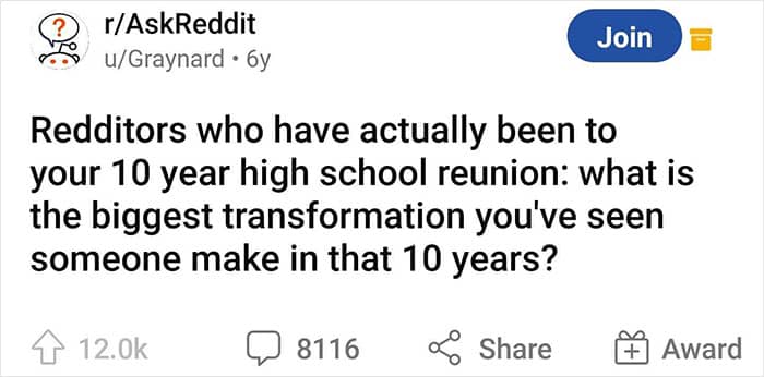 We’ve collected some of the most powerful real-life stories about the biggest transformations, good and bad, that people have seen during their school reunions, as shared on r/AskReddit. It just goes to show that nobody’s future is truly set in stone. And the trajectory you’re on in high school can change drastically. Upvote the stories that impressed you the most, and let us know how your recent reunions went in the comments, dear Pandas.