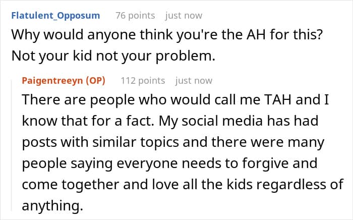 Out of nowhere, her ex asked her to babysit his daughter three days a week. She gave him a firm no (multiple times) and straight-up ignored his barrage of follow-ups. His wife then texted her repeatedly, insisting she “be a better mother” and treat the lovechild like family so the half-siblings could grow up close. OP, however, refused to budge.