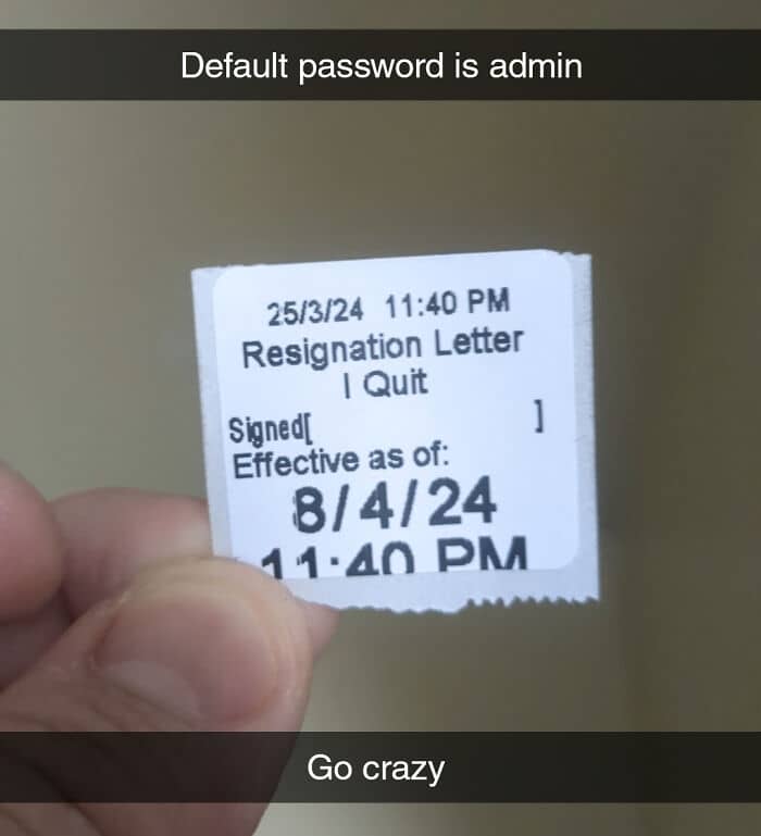 We hope you’re enjoying your scroll through these silly ways of quitting, pandas! Keep upvoting the photos that you find particularly clever, and let us know in the comments if you’ve ever left a job in a hilarious way. Then, if you’re looking for even more signs that it might be time to quit your job, you can find another We article on the same topic right here!