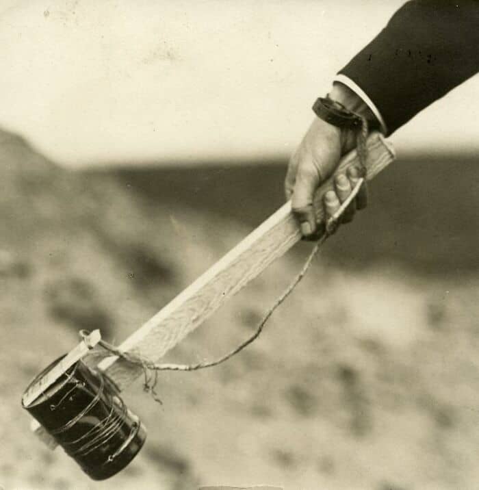 The Great War. Dutch army exercises during the First World War. A modern petard (improvised hand grenade of cans for instance) ready to be thrown. 1916.
