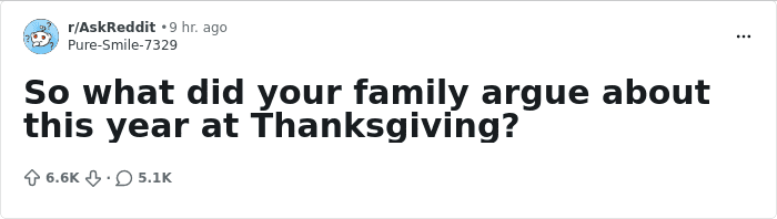 An online community asked people to share this year’s main event, and the responses are a glorious feast of holiday drama. From scorched pies to political hot takes, the arguments were as varied as the side dishes. Prepare to feel much better about your own insane family after reading these outbursts!