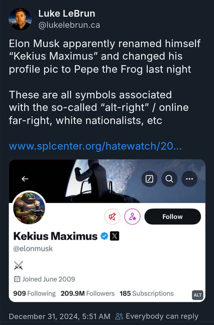 #58 Elon Musk’s Alt Account Commenting On A Post Made By Elon Musk