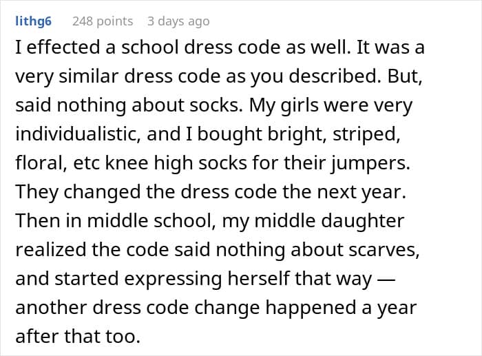 In the story, the mom expressed opposition but did it through malicious compliance. While it ruffled the feathers of administrators, her actions caused a positive change, which was a win for the students.