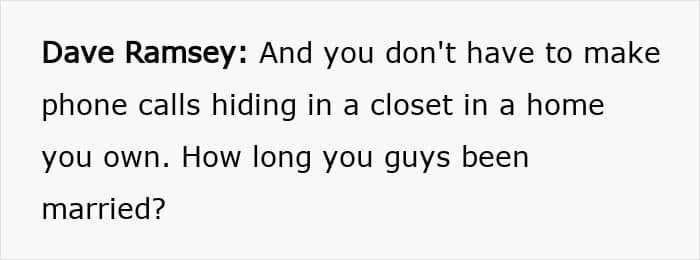 Imagine not being able to make a private phone call in the house that you live in and own… That’s the reality for one newlywed woman who hid in her closet so that she could reach out to financial adviser Dave Ramsey for help.
