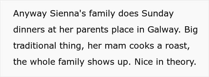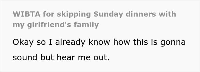 The poster’s girlfriend had a family tradition where they all met for dinner every Sunday, and he always accompanied her