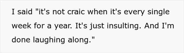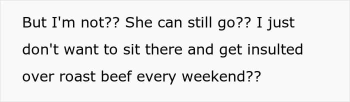 The poster was also annoyed by this and his girlfriend’s silence when it happened, so he refused to go for any more of these dinners
