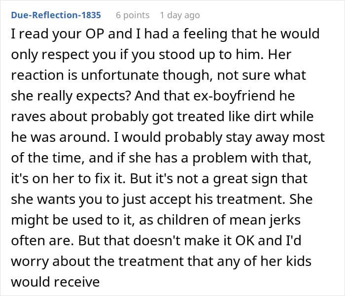 Also, OP’s girlfriend’s silence was truly baffling. Believe it or not, but an unsupportive partner can lead to a physical impact on a person’s body. Research has found that it can lead to physical stress, as evidenced by higher levels of the stress hormone cortisol in the body. On top of being belittled by her dad, he also had to face this. I truly feel sorry for the guy.