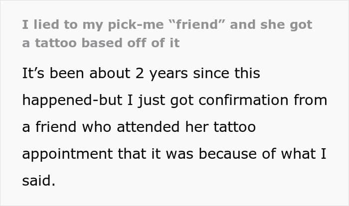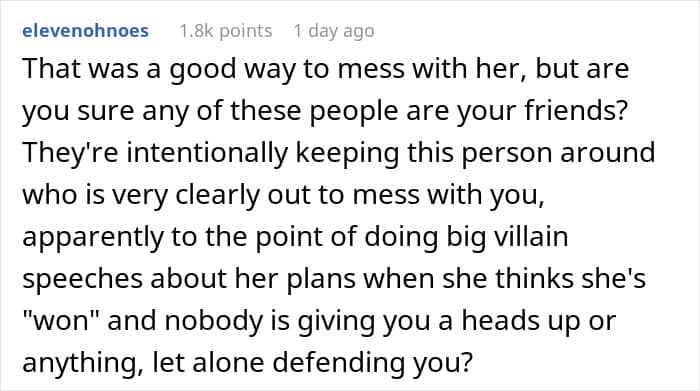So one woman plotted an intricate bit of revenge against a pick-me “friend”