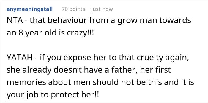 Most people told the woman that she had done well by kicking out her rude boyfriend and that he had no right to behave that way with her daughter. Folks were shocked by the fact that the OP had no plans to break up with the man and, instead, was actually rethinking her decision.