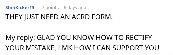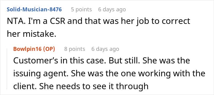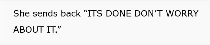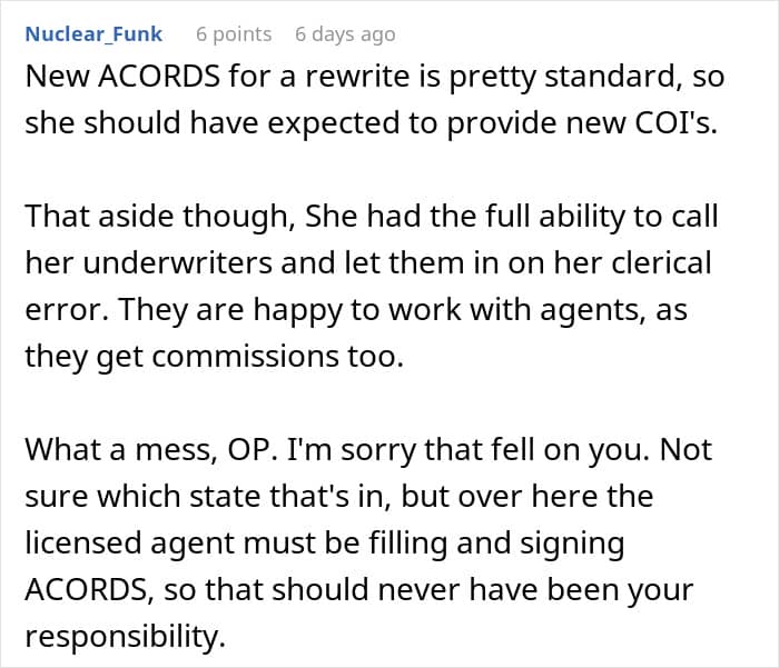This time, this woman’s client contacted the OP – the slacky coworker needed to correct her own mistake, according to work protocol. The OP reported this to a colleague, who initially tried to claim there was nothing she could do. When the author literally told her exactly what to do, the colleague passive-aggressively replied that yes, she would do everything.