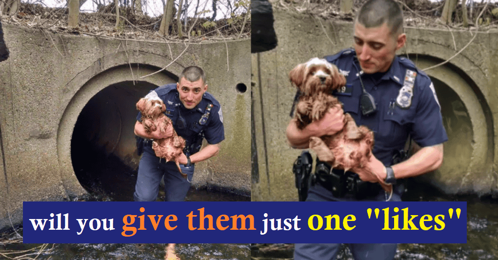 Tiny dog ran under waterway passage after being frightened by car and got stuck in the dark tunnel. She was too scared to move until a cop came to save her.
