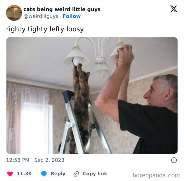 Called ‘Weird Lil Guys,’ it shares pictures of moments when cats embraced their quirky side. From helping their owners change a lightbulb to fighting a pumpkin, continue scrolling to check them out!