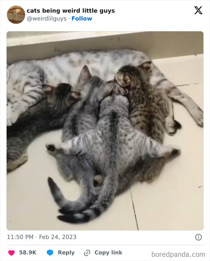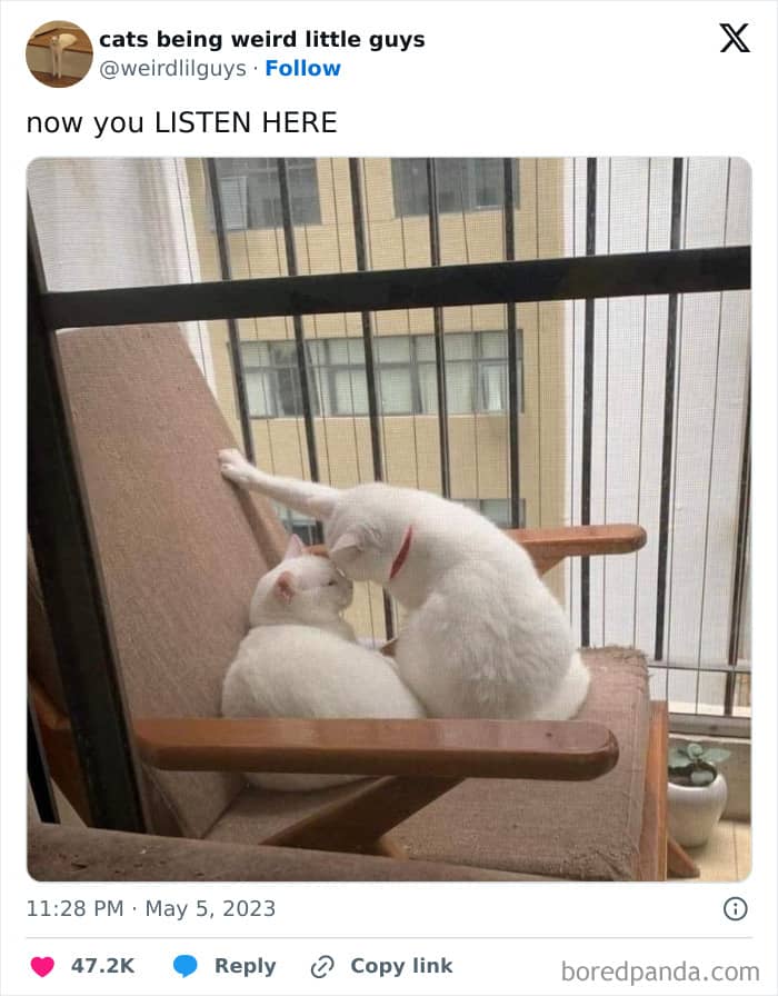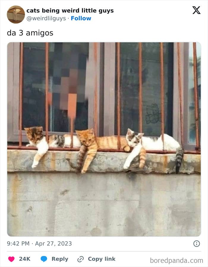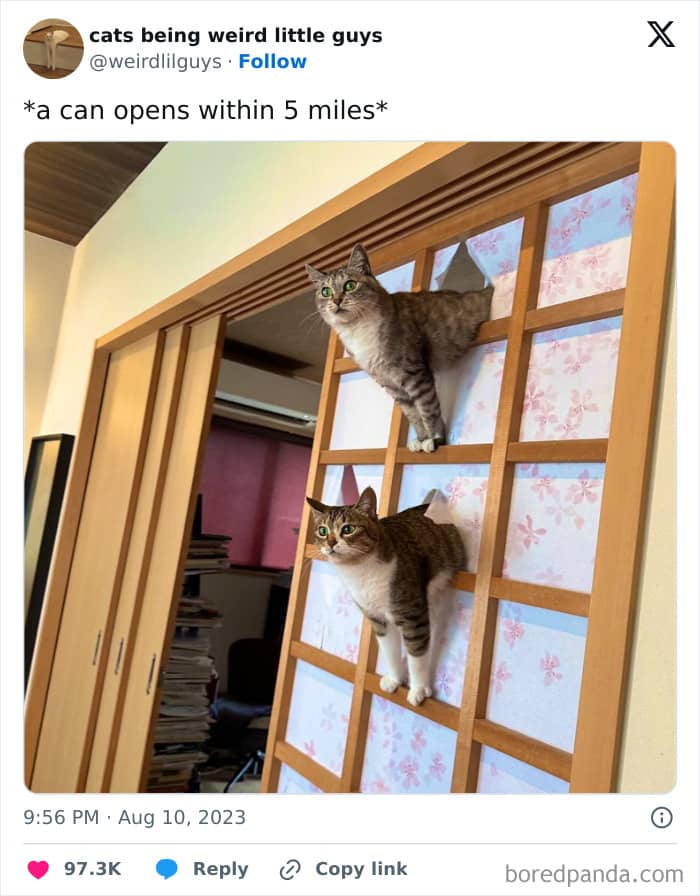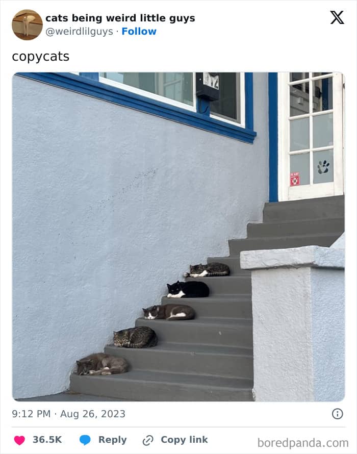 To see more of how they’re doing, check out We’s previous posts on ‘Weird Lil Guys,’ called 50 Cats Acting So Weird, People Just Had To Take A Pic and 50 Times Cats Cracked Their Owners Up By Acting Like Total Weirdos.