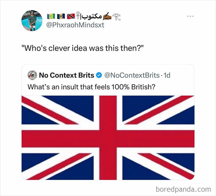 “I’d say final ingredient is British humor. You can see this regularly on the Very Brexit Problems Instagram and Facebook page. British humor is drenched in irony, sarcasm, and self-depreciation, it’s tailor-made for memes. Its unexpected punchlines and absurdity thrive in the meme world, delivering quick, delightful twists. In my opinion, this unique charm, combined with rich cultural references, makes British humor a perfect fit for creating shareable, relatable memes.”
