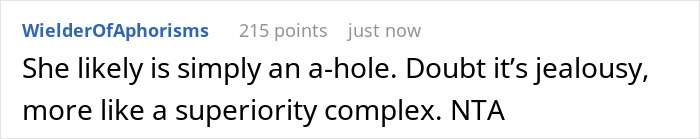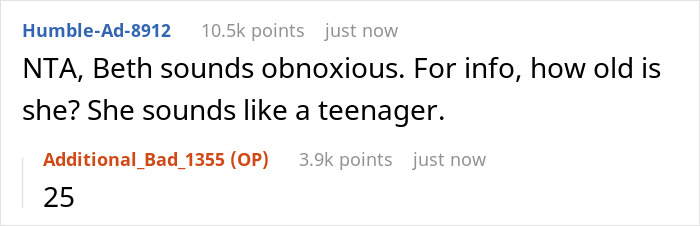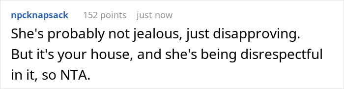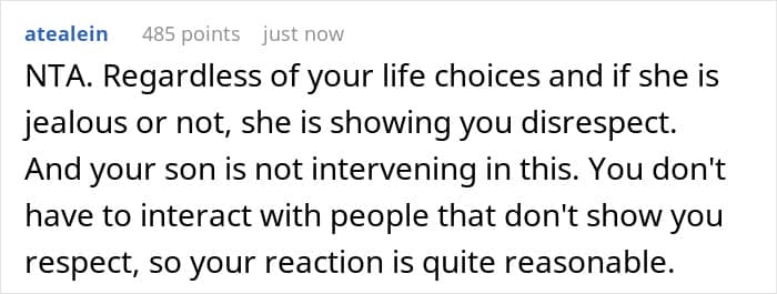 It worked, or so it seemed at first. When, not long after, another judgemental comment found its way out, the OP reached her breaking point and kicked Beth out. Unfortunately, this also resulted in the author gaining her son’s disfavor, with him calling her a jerk on the way out with his wife.