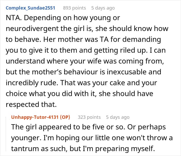 Many readers assured the man that the cake was rightfully his