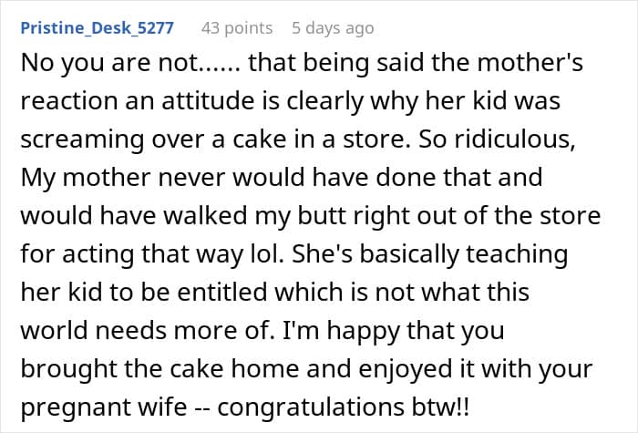 Below, you’ll find a story that was recently shared on the “Am I the [Jerk]?” subreddit, detailing how one man had to deal with a child’s temper tantrum in a bakery just to bring home some cake to his pregnant wife.